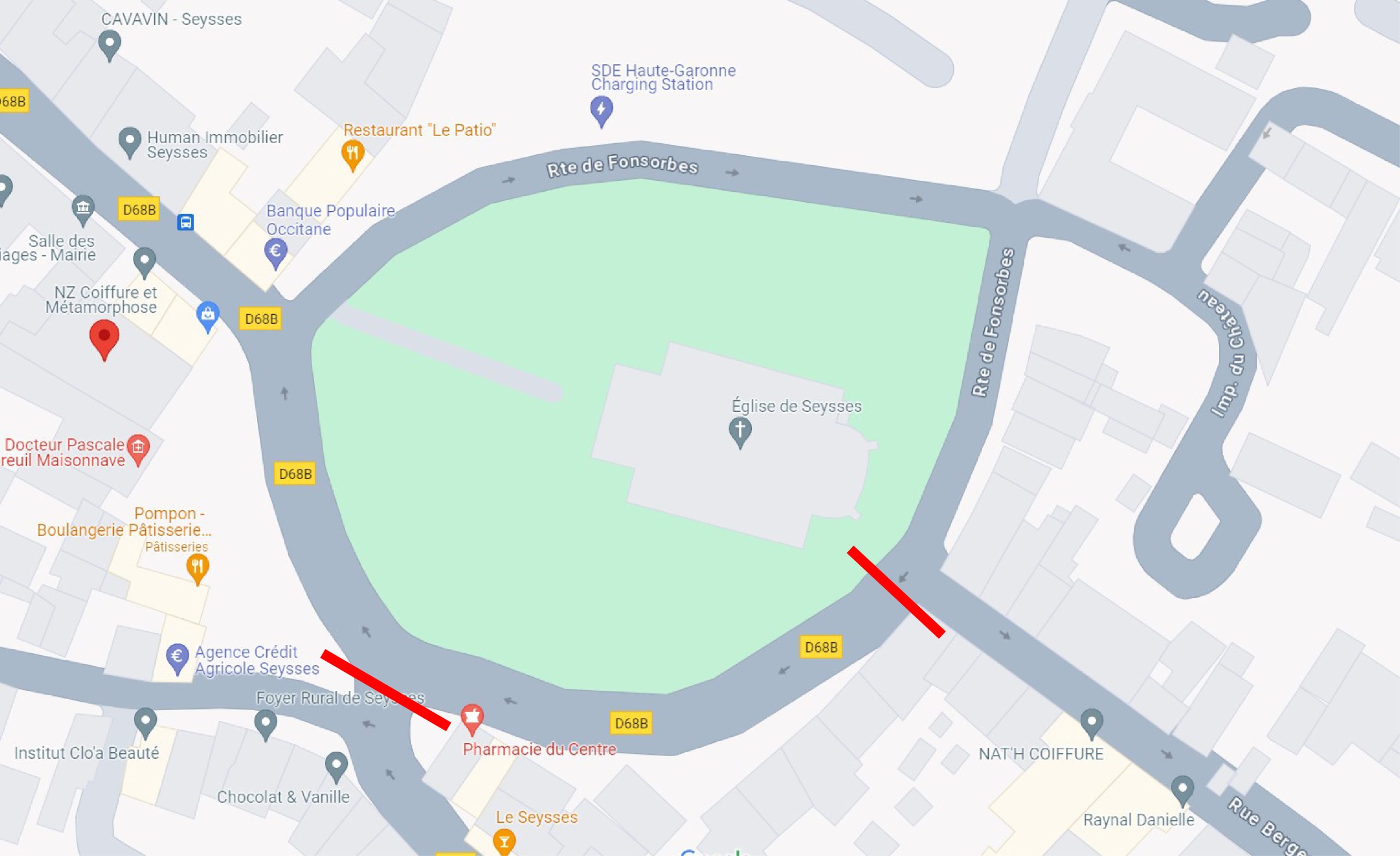 - la route de Fonsorbes, après l’angle avec la rue Bergeaud,