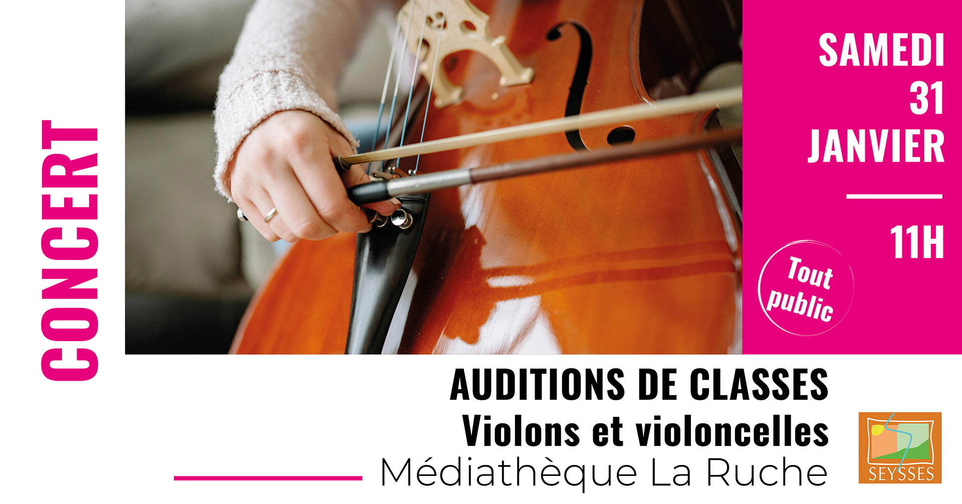 Médiathèque La Ruche 10 place de la Libération, SeyssesAuditions de classes de violon et violoncelle du CRI le samedi 31 janvier 2026.