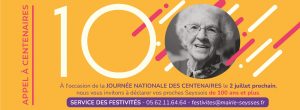 Le 2 juillet prochain sera fêtée la Journée nationale des centenaires. La municipalité vous invite à faire part de vos connaissances seyssoises de 100 ans ou plus au service des festivités.