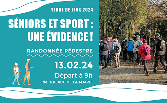 SÉNIORS ET SPORT : UNE ÉVIDENCE ! Le Service des Sports organise une randonnée pédestre à destination des séniors dans le cadre du label Terre de Jeux 2024 le mardi 13 février 2024. . Informations circuit : départ à 9 heures de la place de la Libération, devant la...