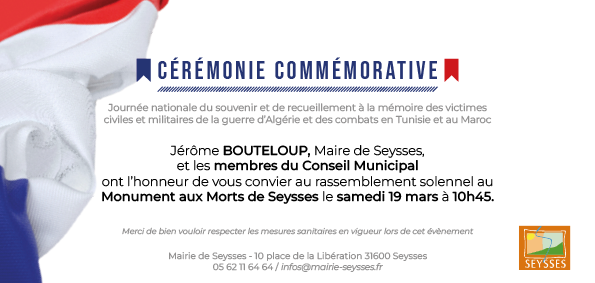 Le maire Jérôme Bouteloup présidera le samedi 19 mars à l’occasion du 60e anniversaire du Cessez-le-feu en Algérie, la cérémonie commémorative de la Journée nationale du souvenir et de recueillement à la mémoire des victimes civiles et militaires de la guerre d’Algérie et des combats en Tunisie et au Maroc.