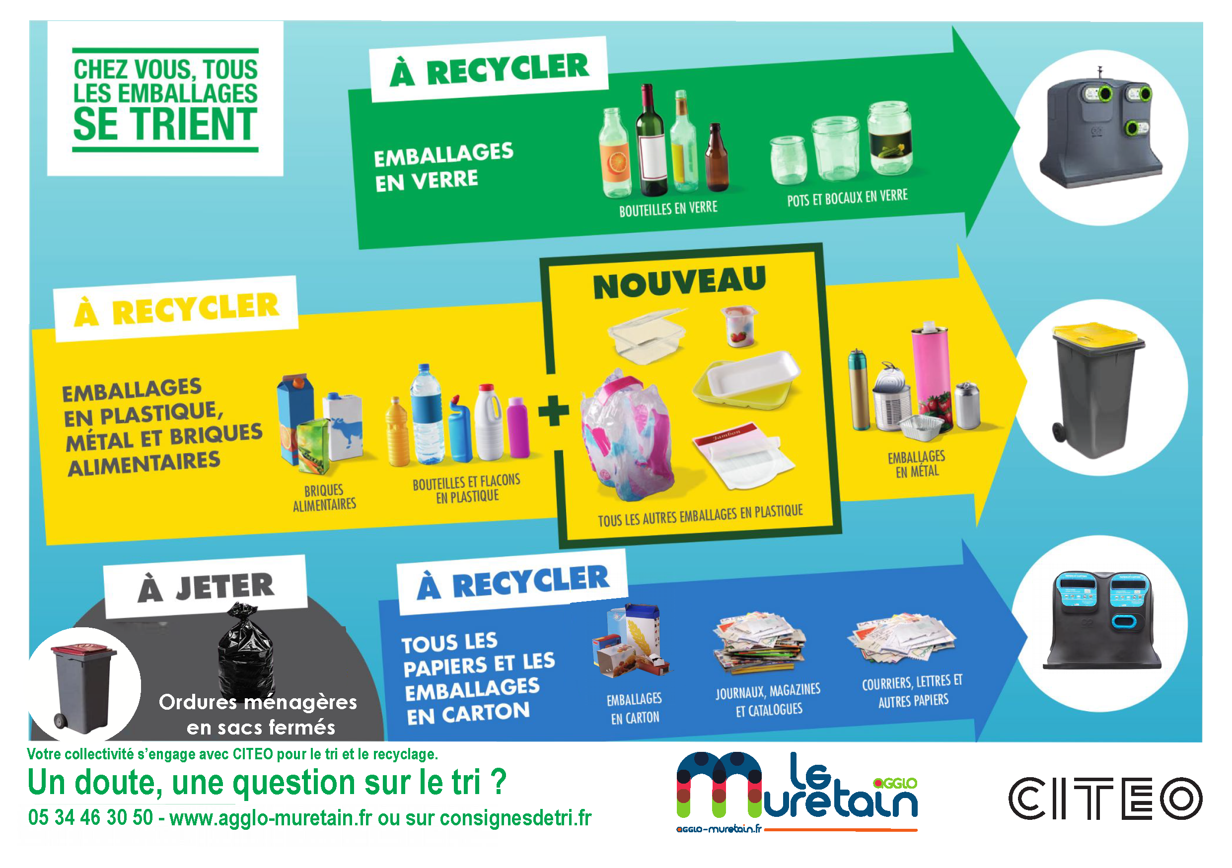 Les déchets recyclables désignent les emballages plastiques, métalliques et les briques alimentaires. Cette année, de nouveaux calendriers ont été établis par le Muretain Agglo qui est en charge de la gestion des déchets.