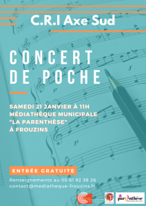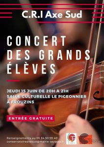 Depuis le 10 janvier 2020, le Ministère de la Culture a classé par arrêté l’école de musique Axe Sud dans la catégorie “Conservatoire à Rayonnement Intercommunal “. Ce label de qualité place cet établissement d’enseignement artistique de la musique comme un outil essentiel et incontournable sur son territoire.”