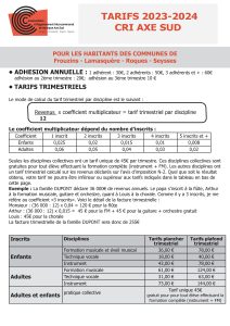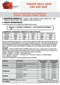 • instrument : de 20’ à 45h. Horaire à convenir avec le professeur en début d’année