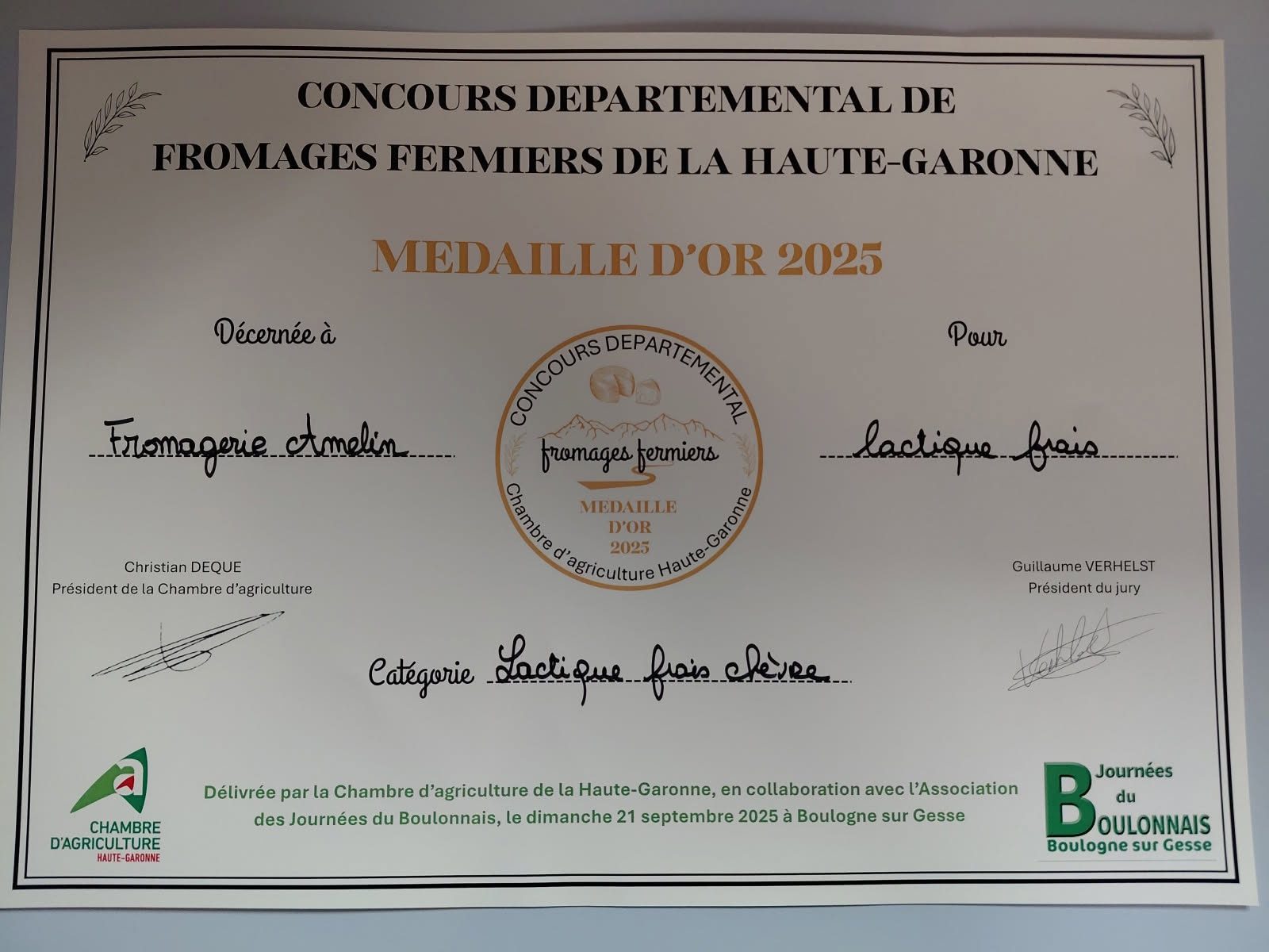 La Fromagerie Amelin a également reçu en septembre 2025 la médaille d’or 2025 lors du con