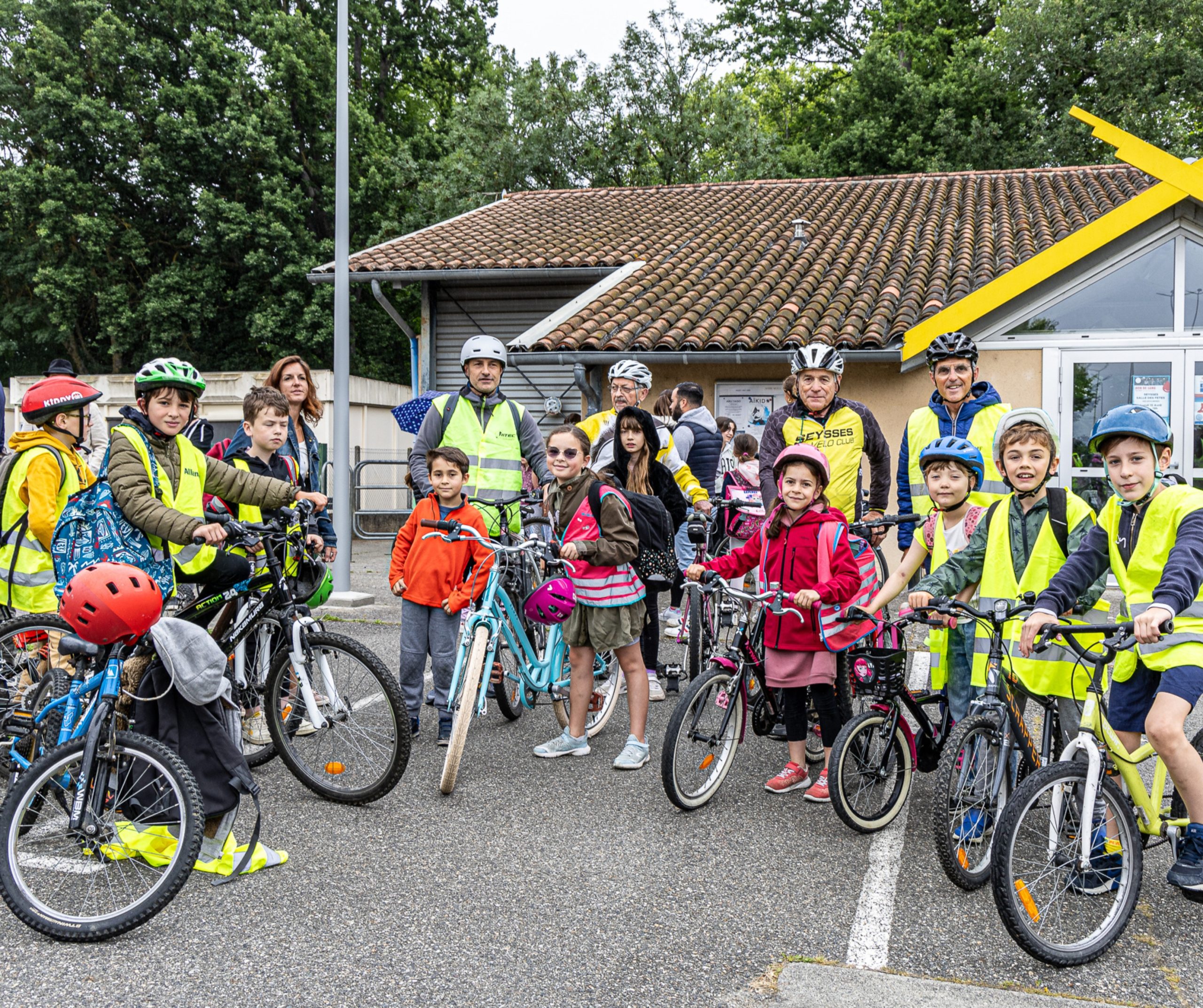 Du 27 au 31 mai 2024, écoliers et collégiens ont pris leur vélo pour se rendre à leur établissement scolaire. Chaque matin, les inscrits munis d’un casque et d’un gilet jaune, partaient de 9 départs différents, avec 2 créneaux horaires possibles.