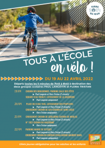 Du 19 au 22 avril, les écoliers de Paul Langevin et Flora Tristan ont pris leur vélo pour se rendre dans leur établissement ! Chaque matin, les enfants avaient la possibilité de rejoindre leur classe à deux roues. Encadrés par des agents de la ville, des cyclistes du « Seysses vélo club » et des parents d’élèves, ils ont été 130 à participer. Un chiffre qui représente environ 17% de la totalité des enfants scolarisés dans les écoles publiques de Seysses.