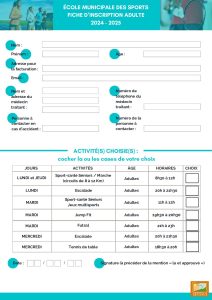 FICHE D’INSCRIPTION ADULTE 2024 – 2025s