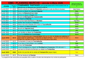 Accueil » Culture, Sports & Loisirs » École municipale des sports » Plannig marche EMS, Janvier à Mars 2026