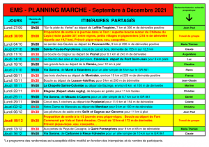 Accueil » Culture, Sports & Loisirs » École municipale des sports » Plannig marche EMS Septembre à Décembre 2021