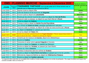 Plannig marche EMS, Septembre à décembre 2025