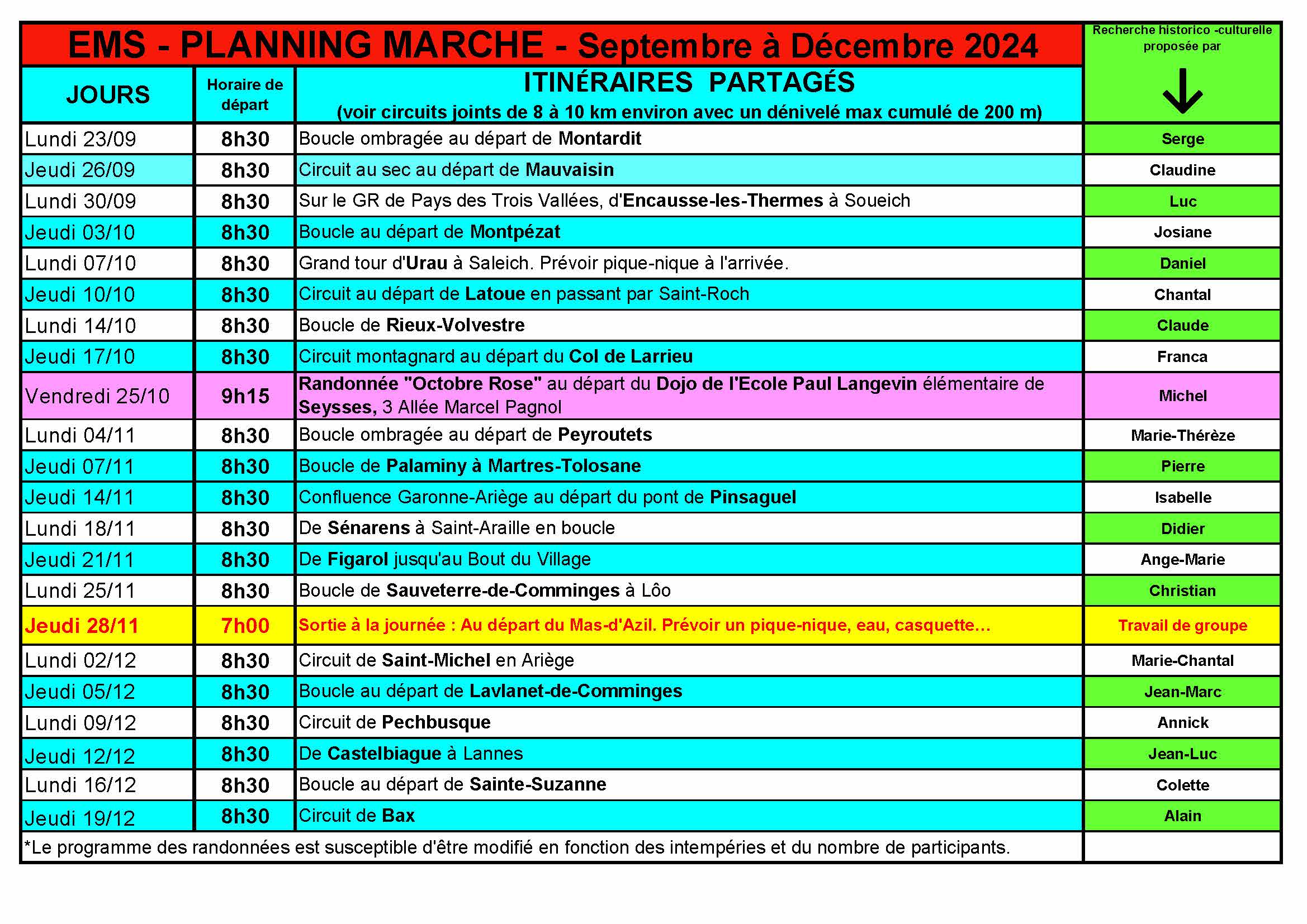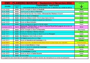 Accueil » Culture, Sports & Loisirs » École municipale des sports » Planning marche EMS, Septembre à Décembre 2024