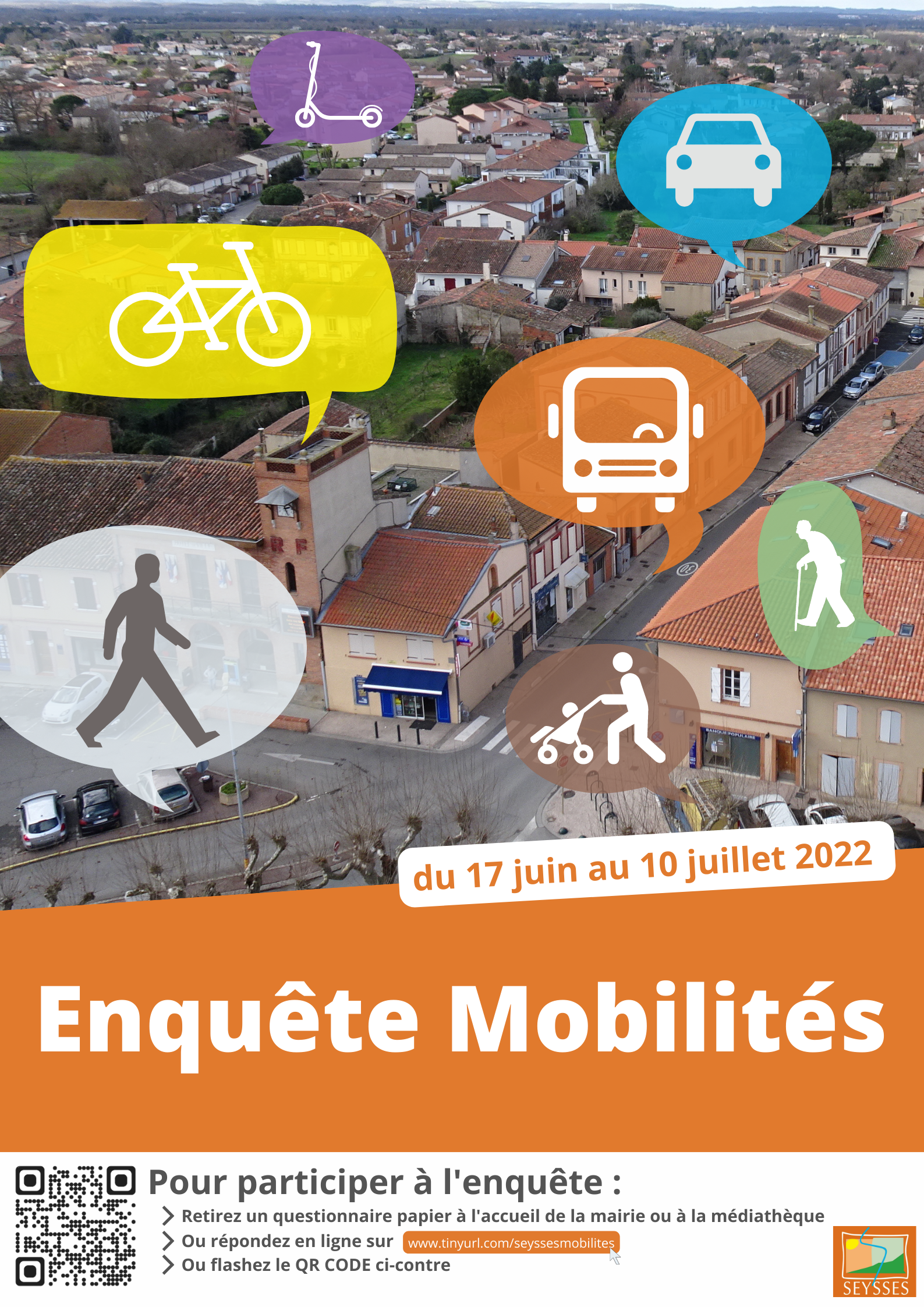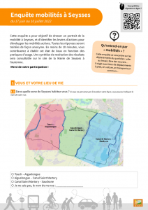 La mairie de Seysses a réalisé du 17 juin au 10 juillet une enquête. Celle-ci avait pour objectif de dresser un portrait de la mobilité à Seysses, et d’identifier les leviers d’actions pour développer les mobilités actives.