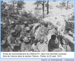 Le 11° RI est chargé de la défense du Bois de Sy qui domine la vallée du ruisseau des Armoises et se trouve face aux hauteurs de Tannay et des positions ennemies.