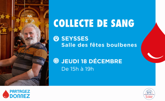 Donnez votre sang lors de cette collecte qui se déroulera le jeudi 18 décembre 2025 de 15h à 19h à la salle des fêtes.