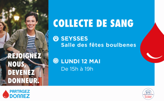 Donnez votre sang lors de cette collecte qui se déroulera le lundi 12 mai 2025 de 15h à 19h à la salle des fêtes.