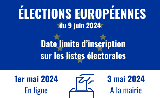 - en mairie avant le 3 mai 2024 : sur présentation d’une pièce d’identité en cours de validité, d’un justificatif de domicile de moins de 3 mois et du formulaire de demande d’inscription (disponible à l’accueil de la mairie).