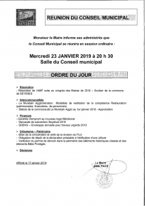 « Tous les Évènements Cet évènement est passé. Conseil municipal mercredi 23 janvier 2019 - 20:30 « Thé dansant – Galette des Ainés Marché de plein vent » ordre du jour Les séances du conseil municipal sont publiques. Date d’affichage le 17 janvier 2019 Ajouter au calendrier Google Agenda iCalendar Outlook 365 Outlook Live Détails Date : mercredi 23 janvier 2019 Heure : 20:30 Catégorie d’Évènement: Vie municipale & CCAS Lieu Salle du Conseil Municipal 8 rue du Général de Gaulle Seysses, 31600 + Google Map Organisateur MAIRIE DE SEYSSES Téléphone 05 62 11 64 64 E-mail infos@mairie-seysses.fr Voir le site Organisateur