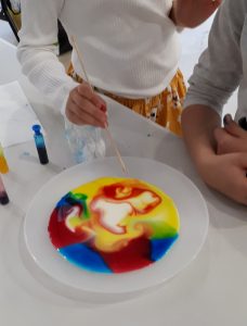 Cet atelier scientifique animé par Délires d’Encre est à destination des 4-7 ans. Grâce aux adorables «Petit-Bleu et Petit-Jaune» et aux aventures du chat Grigri, nous partons observer les couleurs et découvrir que certaines sont composées d’un mélange de couleurs et d’autres non. Grâce à l’expérience de la chromatographie nous retrouverons les couleurs qui se cachent dans les feutres. Avec divers objets nous ferons apparaître les couleurs de l’arc-en-ciel (CD, bulles de savons, miroir) puis les mélangerons (toupie de Newton).