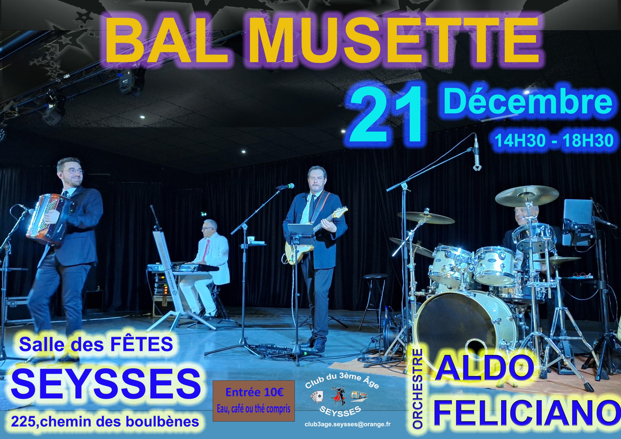 Dimanche 21 Décembre 2025, bal musette à la salle des fêtes avec l’orchestre « ALDO FELICIANO ».