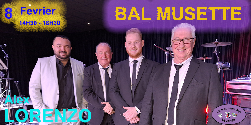 Dimanche 08 février 2026, bal musette à la salle des fêtes avec l’orchestre « Alex LORENZO ».