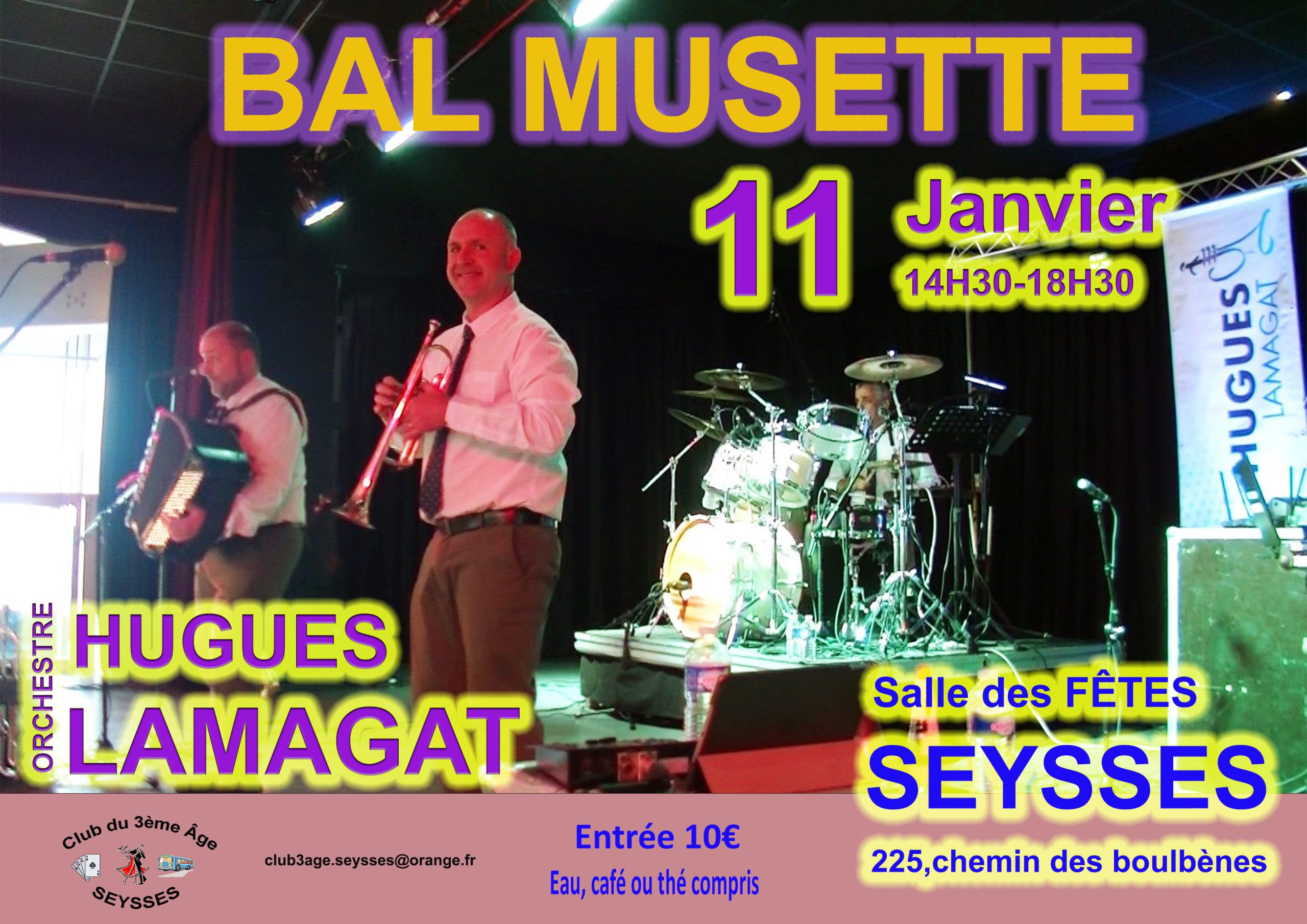 Dimanche 11 janvier 2026, bal musette à la salle des fêtes avec l’orchestre « Hugues LAMAGAT« .
