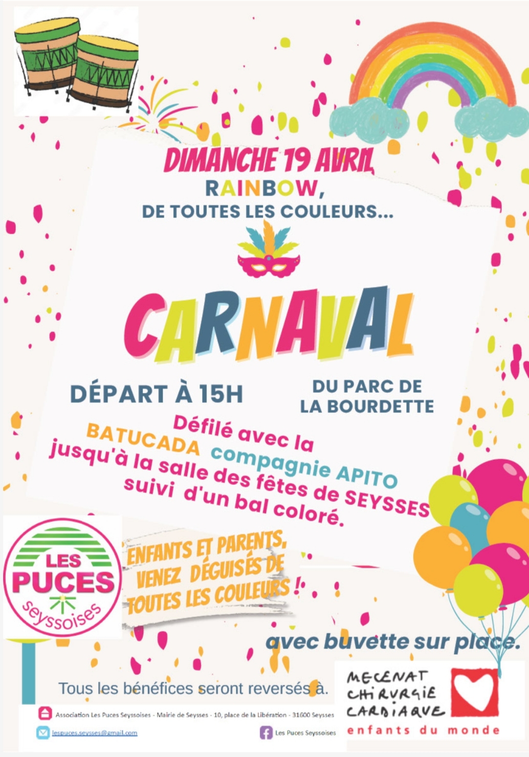 Le carnaval 2026 par les Puces Seyssoises sera sur le thème de l’Arc en Ciel.