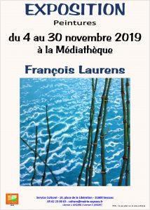 « Tous les Évènements Cet évènement est passé. Exposition à la médiathèque lundi 4 novembre 2019 à samedi 9 novembre 2019 « LOTO du Foyer Rural Généalogie » Peintures de François Laurens durant les horaires d’ouverture de la médiathèque Ajouter au calendrier Google Agenda iCalendar Outlook 365 Outlook Live Détails Début : lundi 4 novembre 2019 Fin : samedi 9 novembre 2019 Catégorie d’Évènement: Programmation culturelle Lieu Médiathèque La Ruche 10 place de la Libération Seysses, 31600 + Google Map Téléphone 05 62 23 00 63 Voir Lieu site web Organisateur SERVICE CULTUREL Téléphone 05 62 23 00 63 E-mail culture@mairie-seysses.fr Voir le site Organisateur