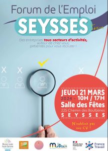 France Travail (ex Pôle Emploi) et le Collectif Économique Seyssois organisent un forum de l’emploi à la salle des fêtes de Seysses ce jeudi 21 mars de 10h à 17h.La Mairie de Seysses est partenaire de cet évènement aux côtés du Muretain Agglo.