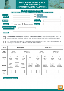 Pour consulter le programme et s’inscrire, il vous suffit de remplir la fiche d’inscription ci-dessous et de l’envoyer avec le certificat médical et l’assurance extra-scolaire à sports.resp@mairie-seysses.fr.