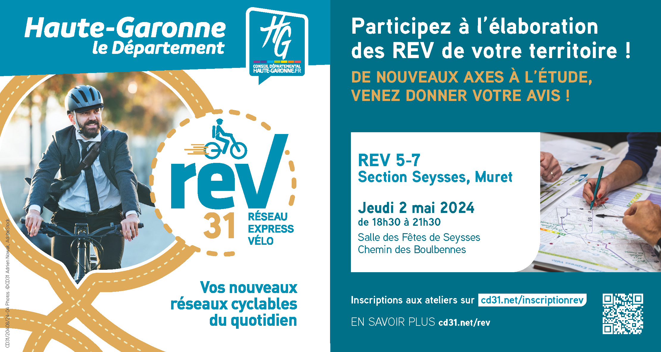 Le Conseil Départemental de la Haute-Garonne vous propose de participer à l’élaboration des REV (Réseaux Express Vélo) de votre territoire !