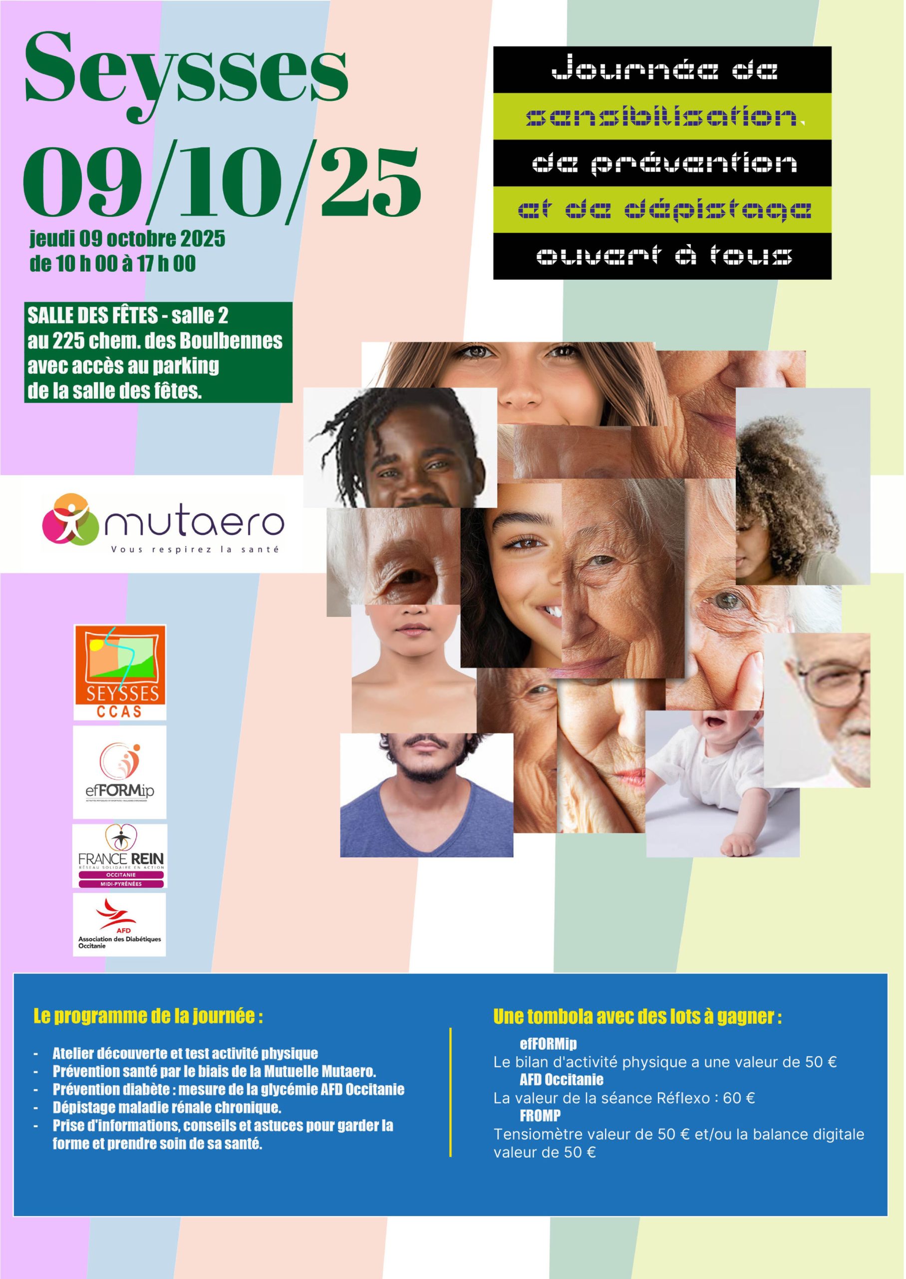 À cette occasion, la ville de Seysses vous propose une journée d’activités le jeudi 9 octobre 2025 de 10h à 17h à la salle des fêtes de Seysses.