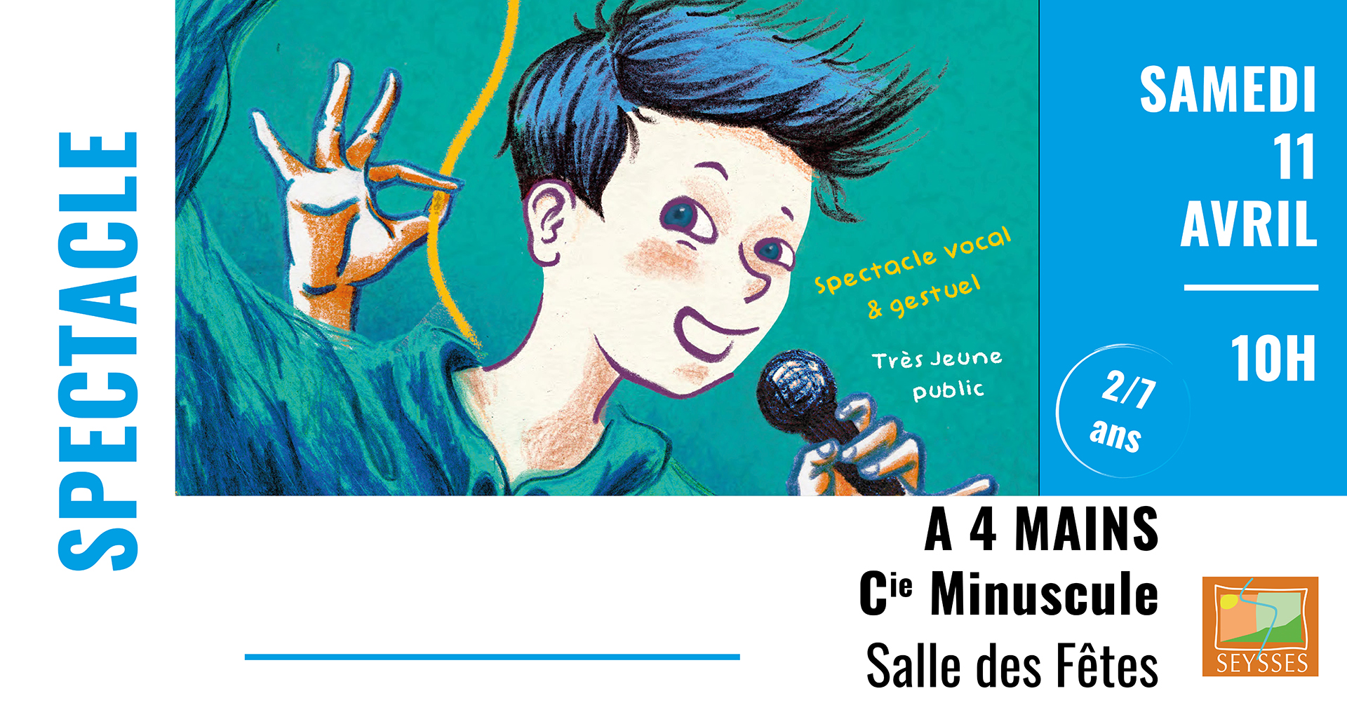 Spectacle vocal et gestuel « Une chanteuse entre en scène pour offrir au public son spectacle. Deux autres mains apparaissent… À qui appartiennent-elles ? En jouant et s’apprivoisant, les quatre mains vont apprendre à exprimer leurs limites et à respecter celles de l’autre pour créer ensemble. » Un atelier de découverte des percussions corporelles sera proposées aux petits spectacteurs : l’occasion de mettre en lien la musique et le corps dans l’espace, explorer le son des mains sur le corps, expérimenter la force et la joie de jouer la musique à plusieurs.