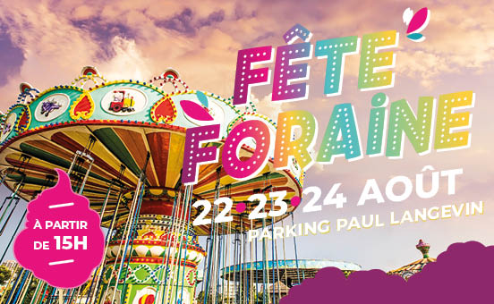 Du vendredi 22 au dimanche 24 août, venez vous divertir en famille ou entre amis à la fête foraine située sur le parking de l’école Paul Langevin !