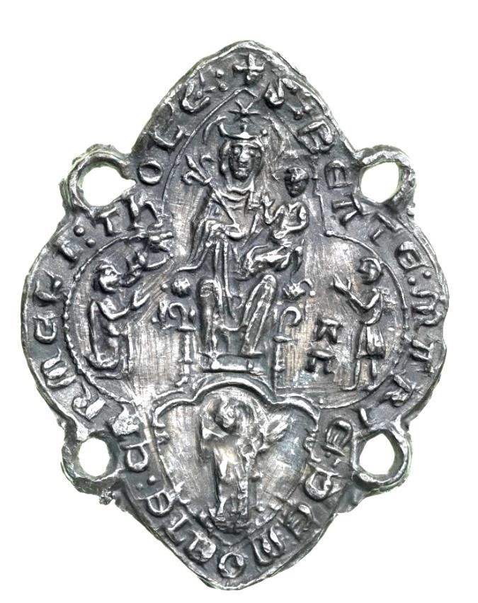 Retrouvé au siècle dernier dans la Tamise, un insigne de pèlerin de forme quadrilobée datant du XIIIe siècle.