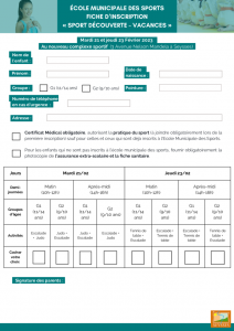 Pour consulter le programme et s’inscrire, il vous suffit de remplir la fiche d’inscription ci-dessous et de l’envoyer avec le certificat médical et l’assurance extra-scolaire à sports.resp@mairie-seysses.fr.