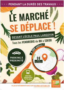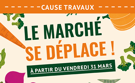 A partir du vendredi 31 mars et pendant la durée des travaux de la requalification de la place de la Libération, le marché du vendredi matin est déplacé devant l’école élémentaire Paul Langevin (devant le dojo).