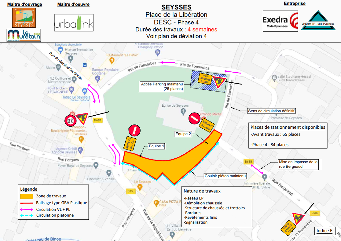 Pendant travaux : environ 84 places - Plan de déviation