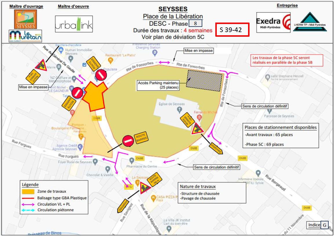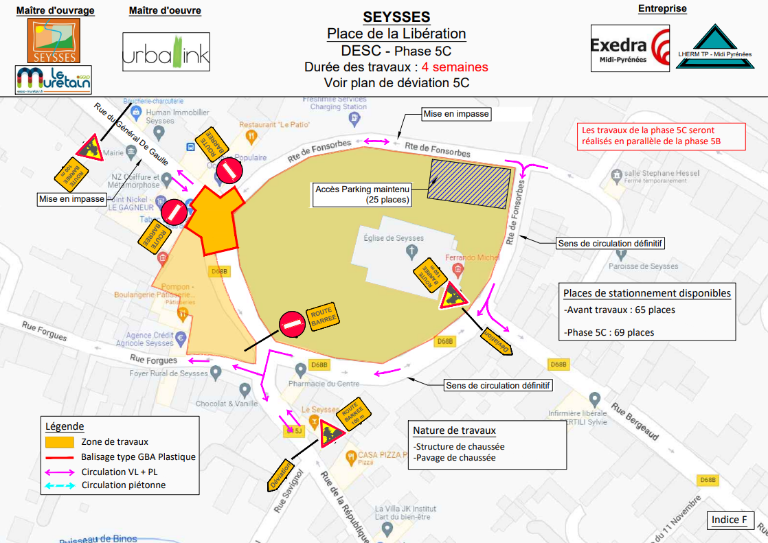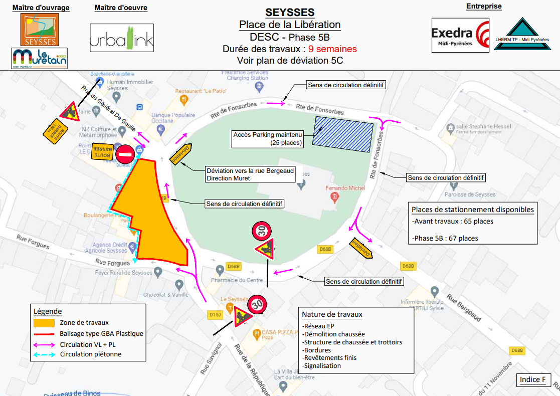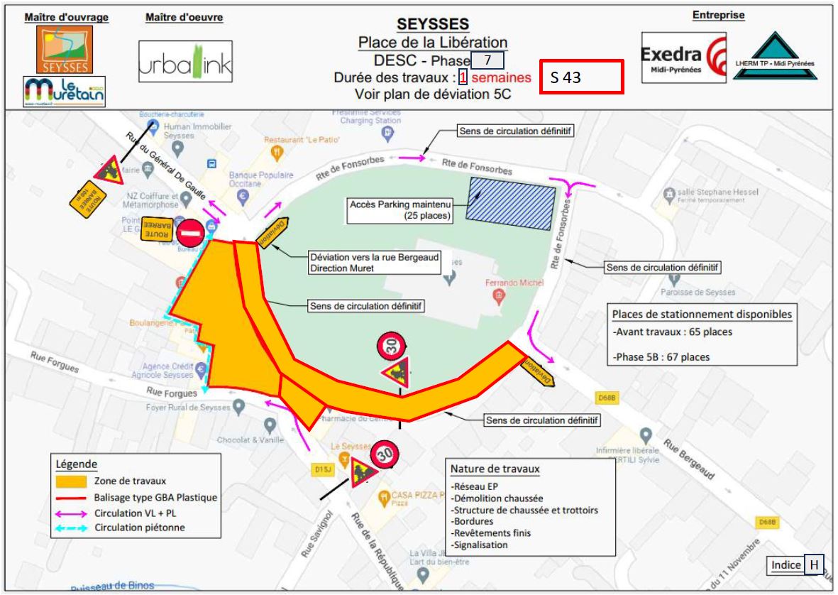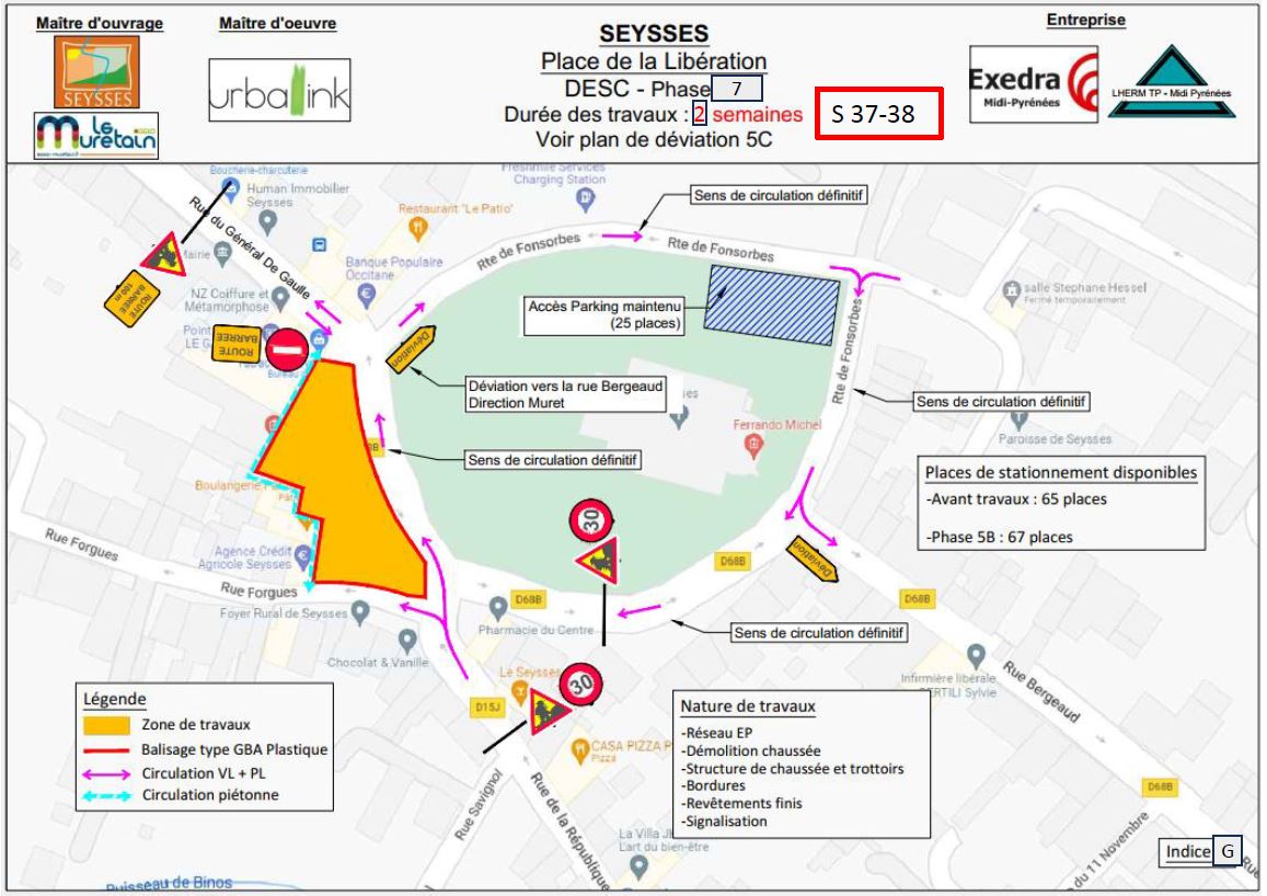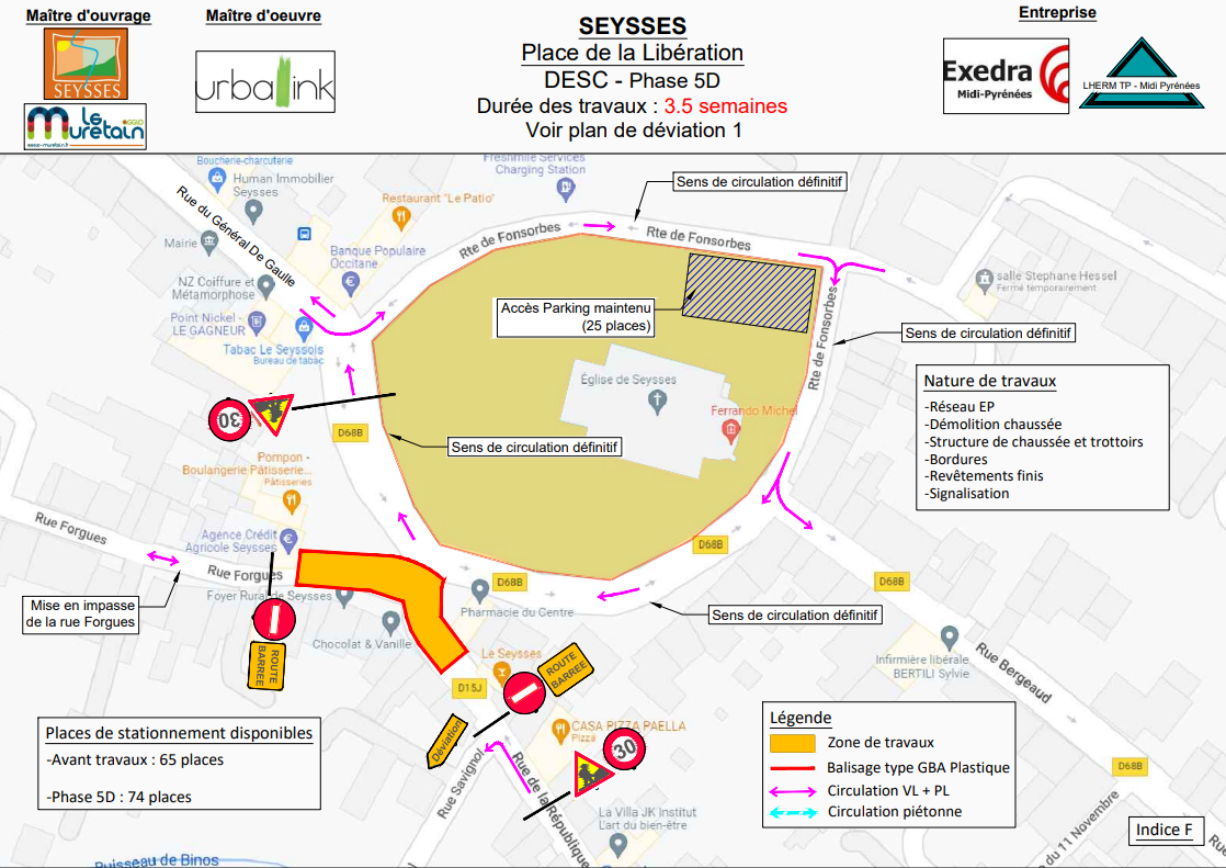 Pendant travaux : environ 61 places - Plan de déviation