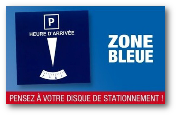 Une zone bleue est une zone de stationnement gratuite, réglementée et limitée dans la durée. Pour s’y garer, les automobilistes doivent apposer un disque de stationnement européen et respecter les limitations de temps, indiquées sur des panonceaux aux entrées de zone. Les périmètres de la Zone Bleue sont délimités et dûment signalés par des panneaux et marquage au sol.