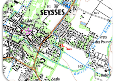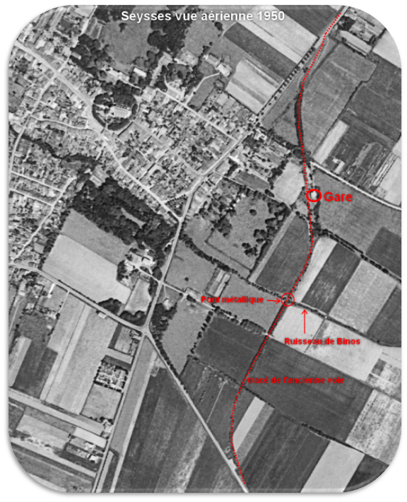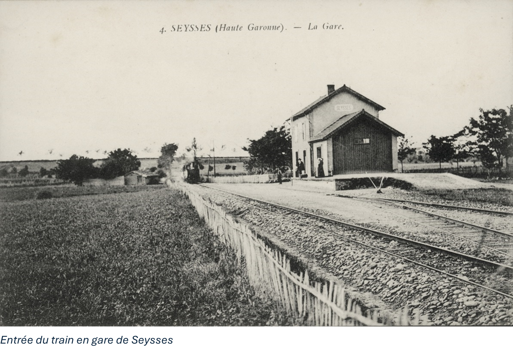 A l’arrêt de Mounéde, la voie coupait la route pour atteindre les gares de Saint-Simon, Cugnaux, Villeneuve-Tolosane, puis retrouvait l’accotement de la départementale 15, passait à Frouzins où il y avait un simple abri au niveau du chemin de Lamartine, elle continuait le long de la route jusqu’à l’entrée de Seysses (au niveau des platanes) pour descendre en pente douce vers la gare de Seysses située au 190 chemin de la Saudrune.