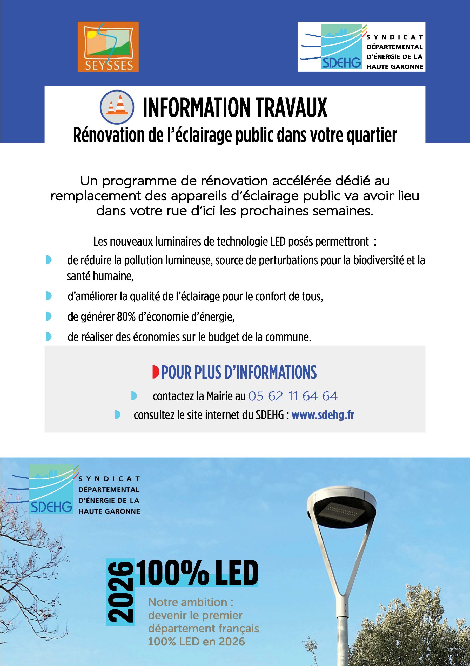 Le SDEHG (Syndicat Départemental d’Énergie de la Haute-Garonne) a mis en place un programme de rénovation accélérée dédié au remplacement des appareils d’éclairage public. La commune de Seysses a voulu s’inscrire dans cette dynamique de rénovation de masse. Les nouveaux luminaires de technologie LED posés permettront :