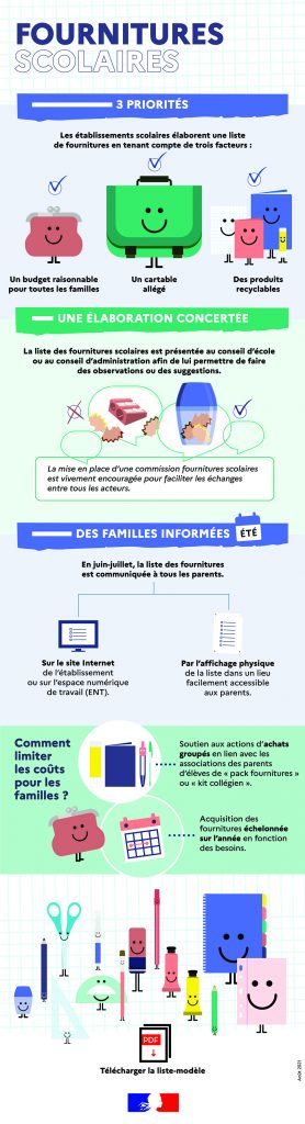En attendant la liste des fournitures scolaires préparée par l’établissement de votre enfant, consultez les recommandations de l’Education Nationale :