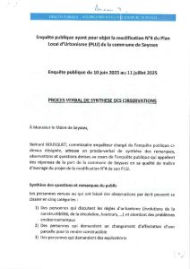 Accueil » Plan Local d’Urbanisme (PLU en vigueur – modification 4) » Annexe 9 – Procès verbal de synthese des observations avec réponses de la commune