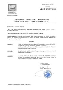 2024-319 Arrêté relatif à l’interdiction d’utilisation des terrains de football – affiché le 15 novembre