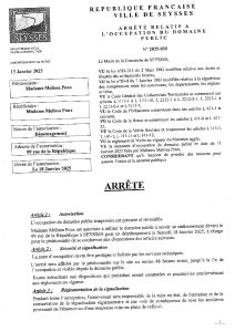 Accueil » Vie municipale » Publications règlementaires » 2025-010-arrete relatif a l occupation du domaine public – stationnement 9 rue de la République – affiché le 13 janvier