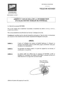 Accueil » Vie municipale » Publications règlementaires » 2025-022 Arrêté relatif à l’interdiction d’utilisation du terrain de football – Affiché le 29 janvier