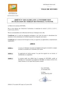 Accueil » Vie municipale » Publications règlementaires » Arrêtés municipaux » 2025-316 Arrêté terrains de foot – affiché le 25 novembre 2025