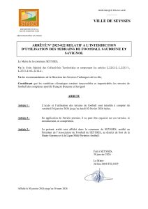 Accueil » Vie municipale » Publications règlementaires » Arrêtés municipaux » 2026-022 Arrêté interdiction terrains de foot