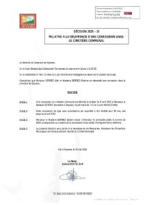 Accueil » Vie municipale » Publications règlementaires » Décisions prises par délégation » DEC 2025 – 15 Délivrance d’une concession dans le cimetière communal